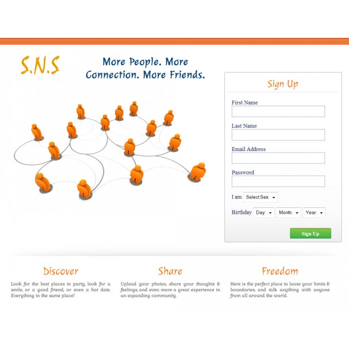 This is a social network site like facebook. The site can be customized and can be branded for yourself. The site was done to match some function of the real thing. Users can post in real-time, create albums, share images, receiving automatic notification and new posts without reloading page, and so much more... view features.